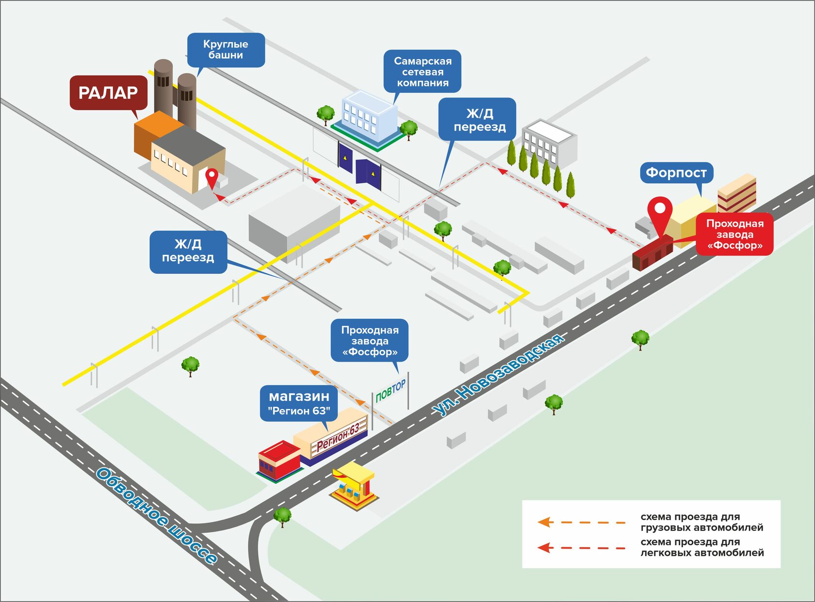 2. С левой стороны от него (если стоять лицом к зданию), находится проходная (облицованная серыми и оранжевыми панелями) на территорию завода Фосфор;