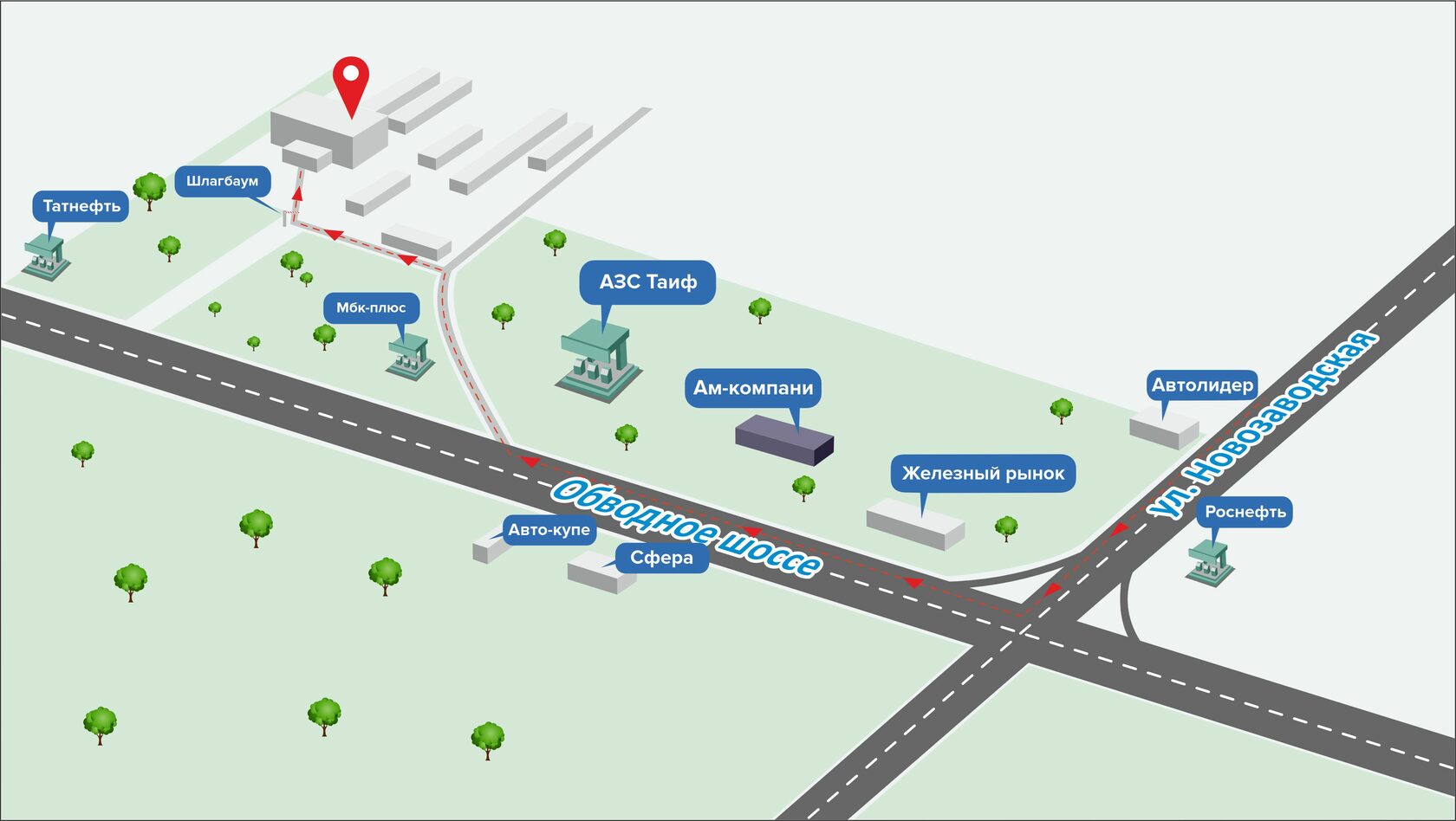 4. Проезжаем по ходу движения ряд туй (живая изгородь компании СВХК) и перед эстакадой поворачиваем налево;